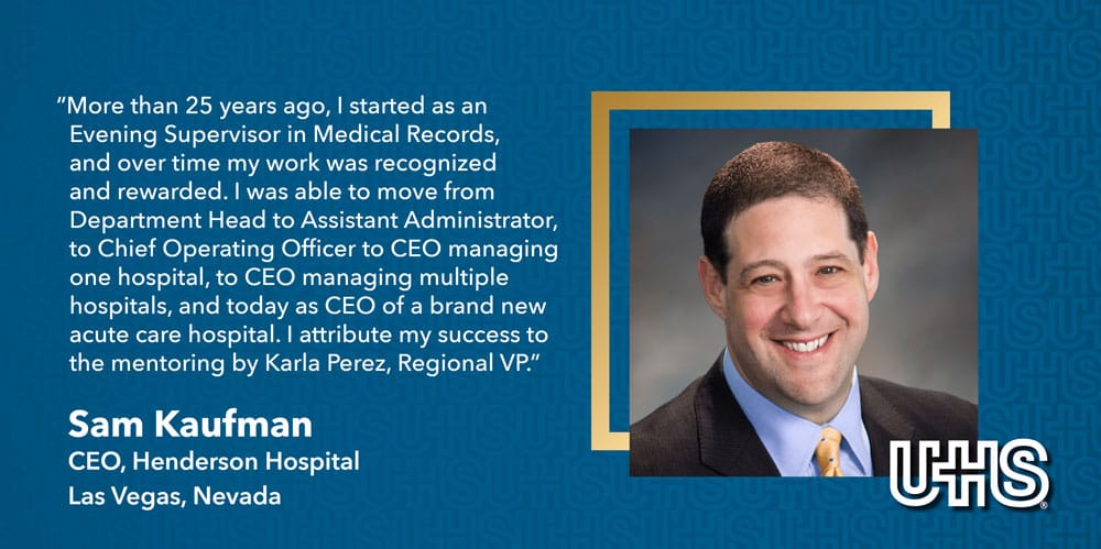 Unwavering passion, superior talent, and focused determination are the keys to being UHS. Our corporate and healthcare facility team members bring these qualities to each and every encounter—with our patients and each other—in contributing to the delivery of high-quality care.