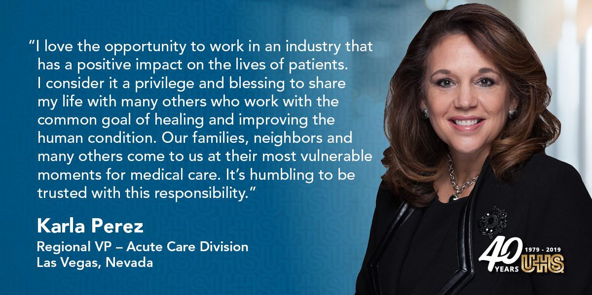 Over our 40+ years, our company, UHS, has become one of the nation’s largest and most respected providers of hospital and healthcare services. We are proud that national, state and local organizations continually honor our employees and facilities for outcomes measures, quality metrics and community service.