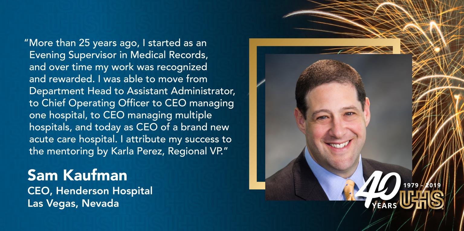 Unwavering passion, superior talent, and focused determination are the keys to being UHS. Our corporate and healthcare facility team members bring these qualities to each and every encounter—with our patients and each other—in contributing to the delivery of high-quality care.